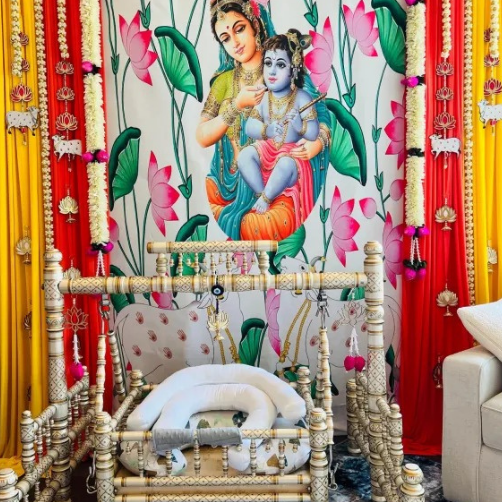 BSeemantham decor banner/Indian Baby Shower backdrop/Valaikaappu/Godh Bharai decor/Mother baby decor 1st birthday Sreemantham decor