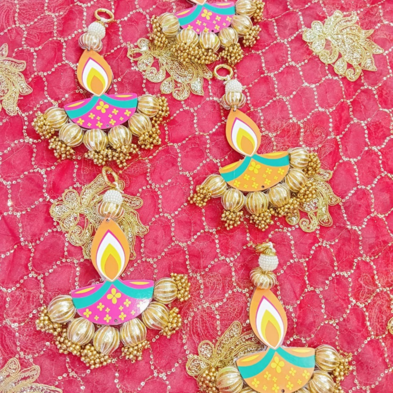 Colour:- Multiple Shape:- Diya The diya hanging comes with a hook or string for installation, allowing you to create a decor in minutes. Handcraftedly made from premium wood!