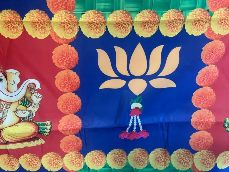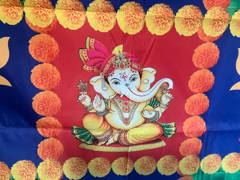 Indian Pooja Cloth Backdrop Pictures Ganesha cocunut leaf lotus Designed for Home Pooja | House Warming | And For All Traditional Events