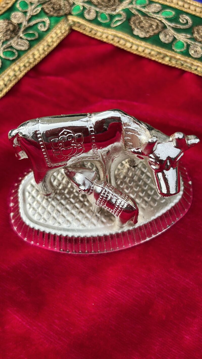 Elevate the decor of your home, office, or temple with this beautifully crafted Small Silver Cow & Calf Metal Idol. With dimensions of 16 cm (L) x 13 cm (W) x 21 cm (H), this decorative piece is designed to bring a sense of serenity and tradition to any space. Made from high-quality metal with a smooth silver finish, it adds a touch of elegance to your surroundings. Whether placed in your living room, pooja room, or workspace, this decorative idol enhances the aesthetic value of your decor. The package contains 1 piece of this exquisite showpiece, making it an ideal addition to your collection or a thoughtful gift for loved ones.