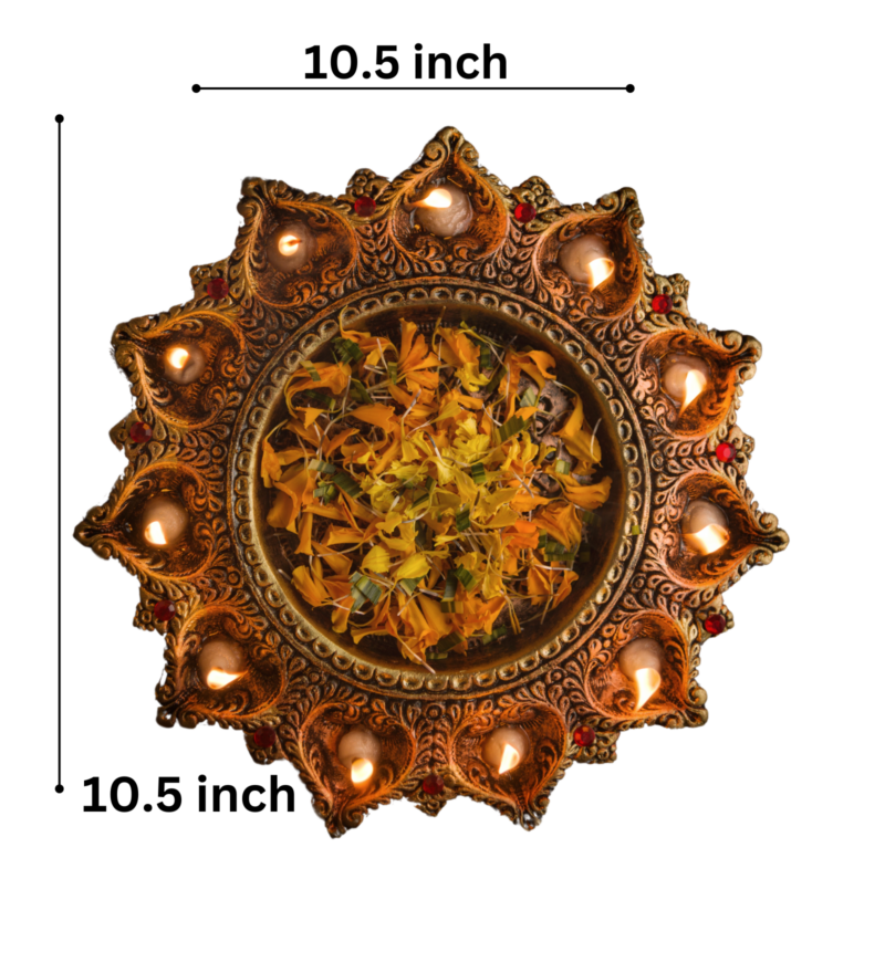 Terracotta 11 Deepam Cum Wallplate Antique Mettallic Shade